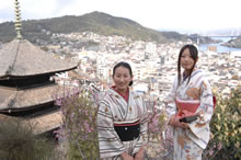 どちらのコースも最終日は着物でお出かけ。尾道の町を散策してレストランでお食事します。