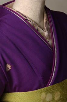 「中級コース」は、訪問着や留袖はもちろん、男性の普段着の着付けまでできるようになります。着付け以外に、生地や産地についてなど、着物の知識を身につけます。