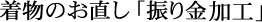 お母様が結納のときに着ていた大切な着物ということを知ったその方は、どうしてもその思いを受け継ぎたい気持ちでこの着物を活かす方法を考え、「振り金加工」を施されました。 |