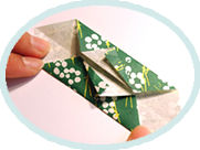 箱折りで、中心線に合わせており返した後、もう一度おり返して表の柄を出します。