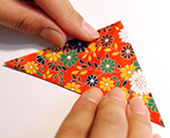 三角に折って、 折り目をつけます。