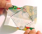 四角に折って、おり目をつけます。
