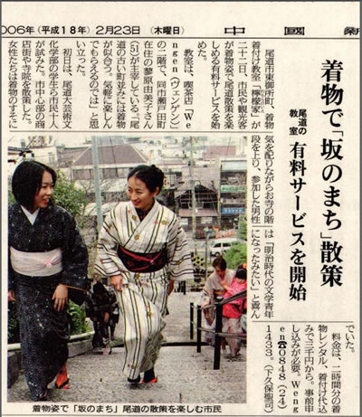中国新聞で「着物で坂のまち散策」の記事が掲載されました。