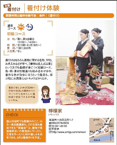 福山・備後Wink9月号に、「着付け体験」の記事が掲載されました。