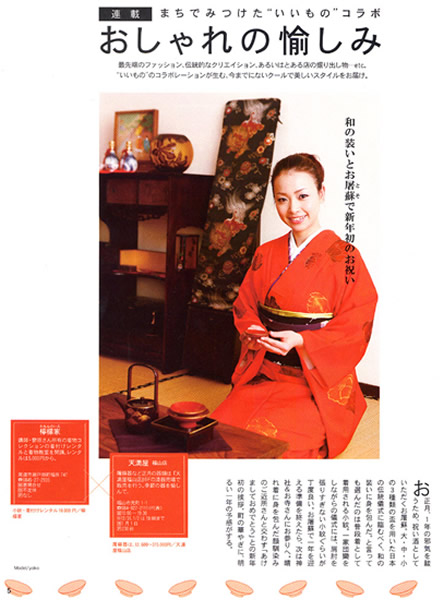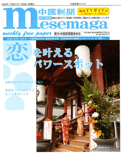 1月9日金曜日中国新聞メセマガお正月号の表紙写真に、着物の女性がふたり。檸檬家で着付け協力させていただきました。