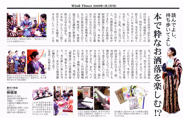 2009年1月号のWinkさんに風呂敷包みや、復刻本、着物着付けが掲載されました。