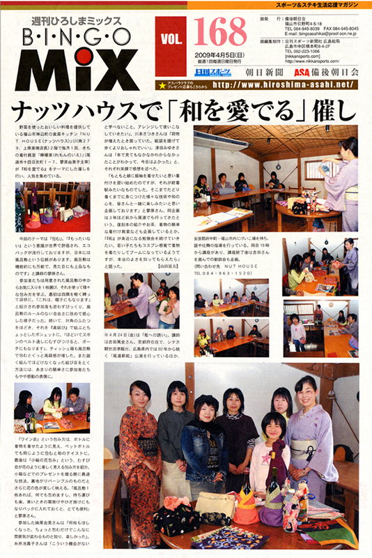 福山市神辺町の食菜キッチン NUT HOUSE(ナッツハウス)さんの2Fで、和を愛でるをテーマにした催しが日刊スポーツの「スポーツ&ステキ生活応援マガジン」週刊ひろしまミックスに掲載されました。